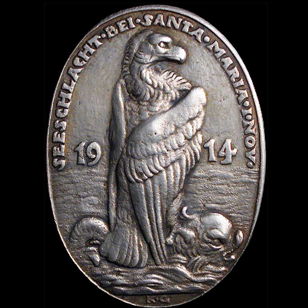 Reverse: “SEA BATTLE AT SANTA MARIA • November 1, 1914.” Eagle atop a dolphin, right.